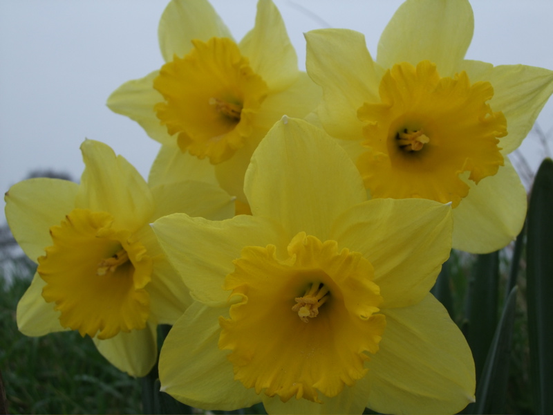 I missed the best opportunity to photograph these. One day recently the sun was out, backlighting the daffodils so that they glowed, but I couldn't stop or I would have been late for work. Now the grey skies and rain have come ... just in time for our fortnight on Shadow!