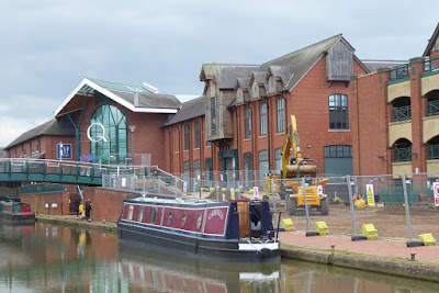 We stopped in Banbury by Bridge 162 so we could go to Aldi for supplies. While we were in the store it started to rain; it kept going until we were back at the boat. After lunch we moved a short distance nearer the town centre ... and almost regretted it. It's a building site, complete with noisy diggers, concrete crushing machine and dust.